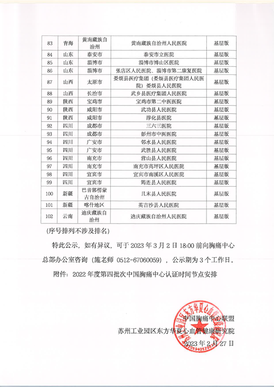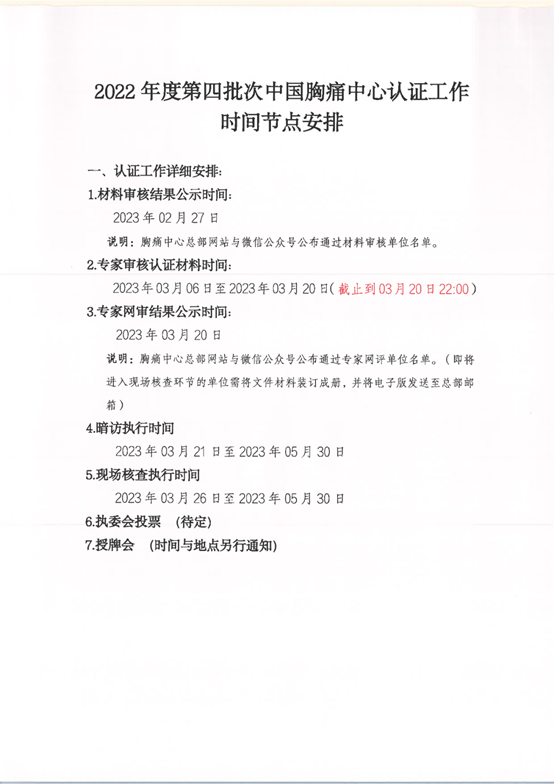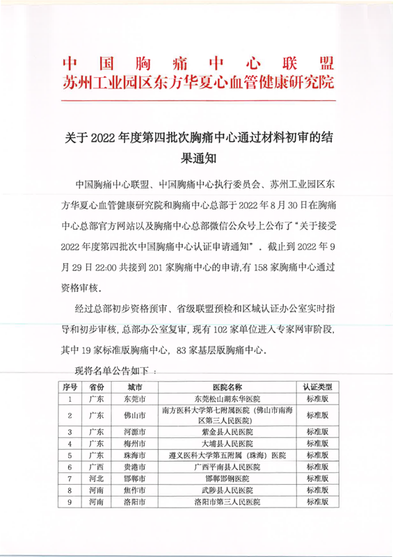 重要通知|关于2022年度第四批次胸痛中心申请认证单位建设材料初步审核结果通知