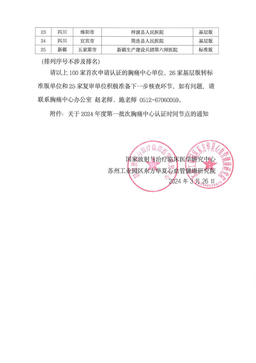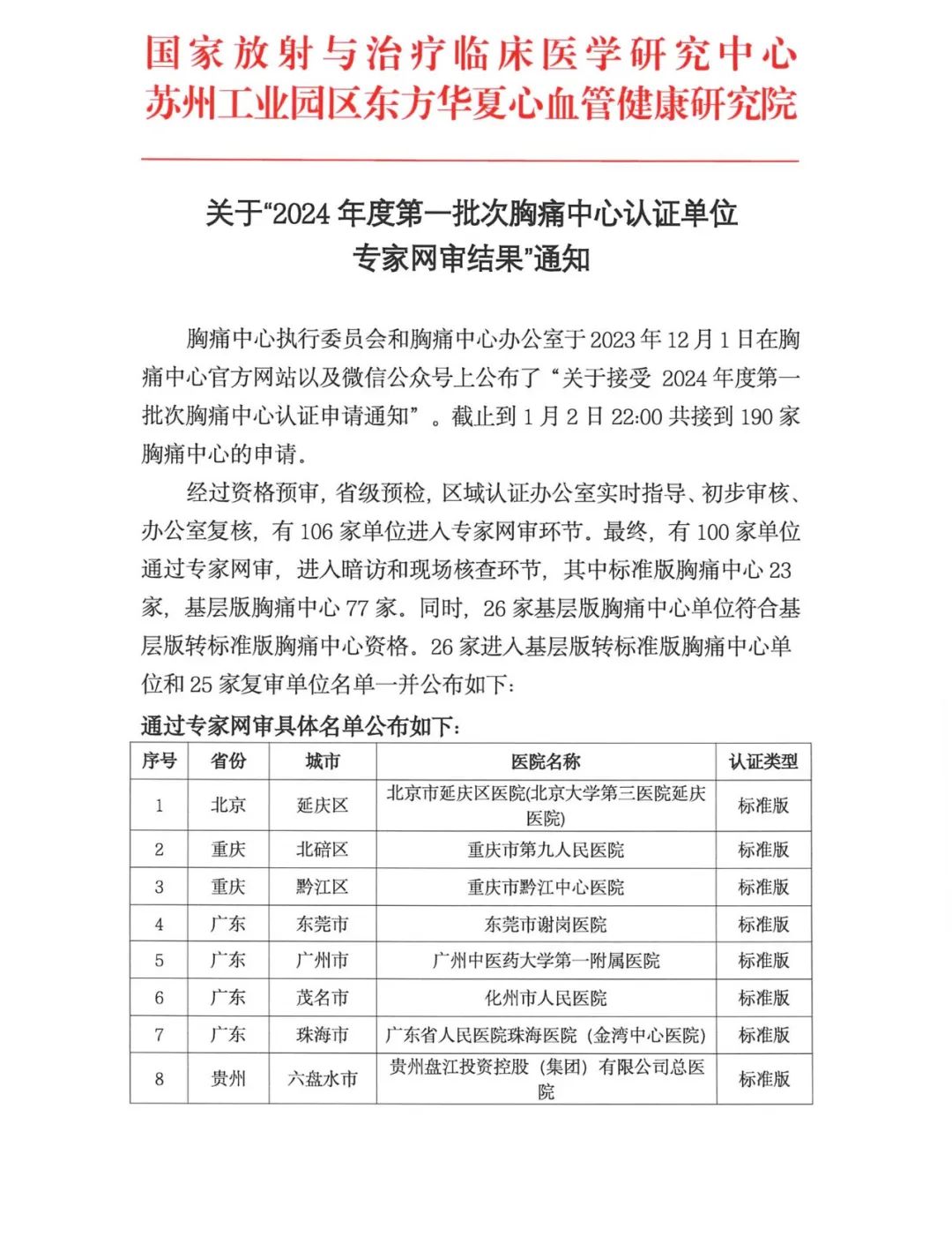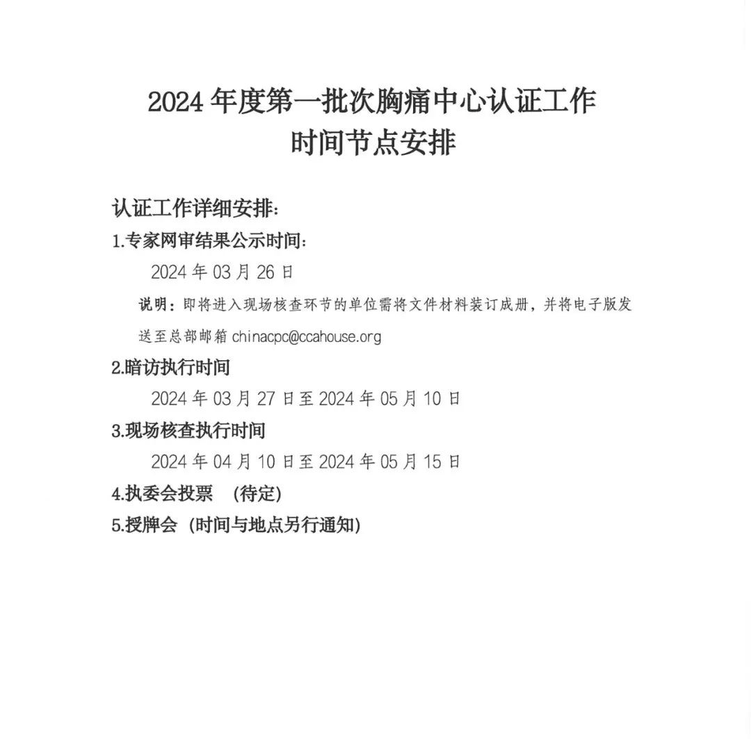 重要通知 | 关于“2024年度第一批次胸痛中心认证单位专家网审结果”通知