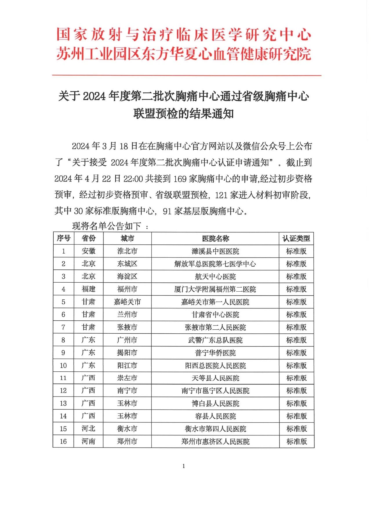重要通知|关于2024年度第二批次胸痛中心通过省级胸痛中心联盟预检的结果通知