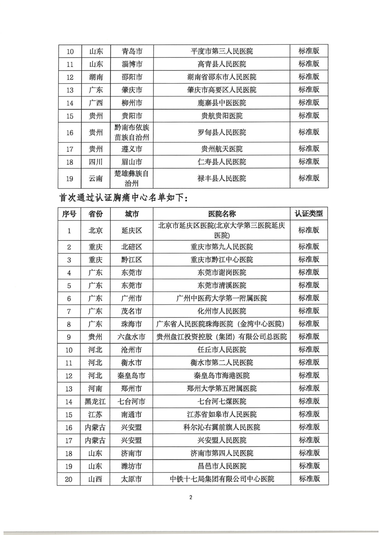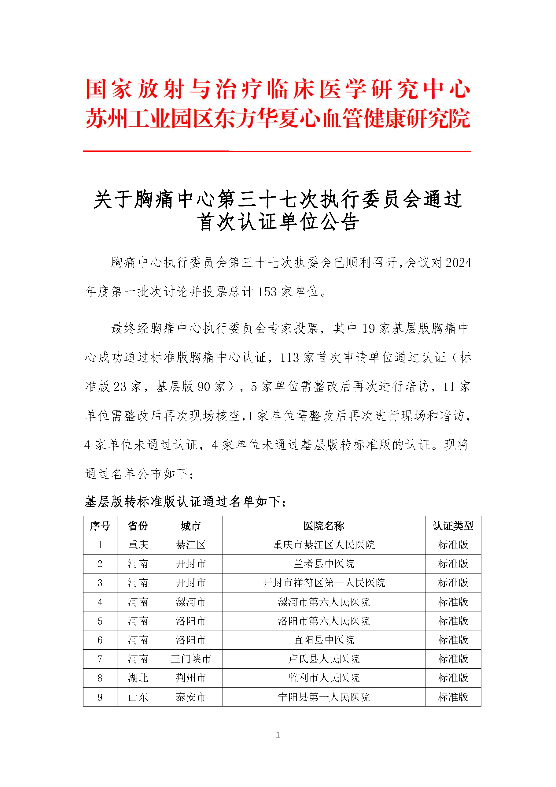 重要通知|关于胸痛中心第三十七次执行委员会通过首次认证单位公告