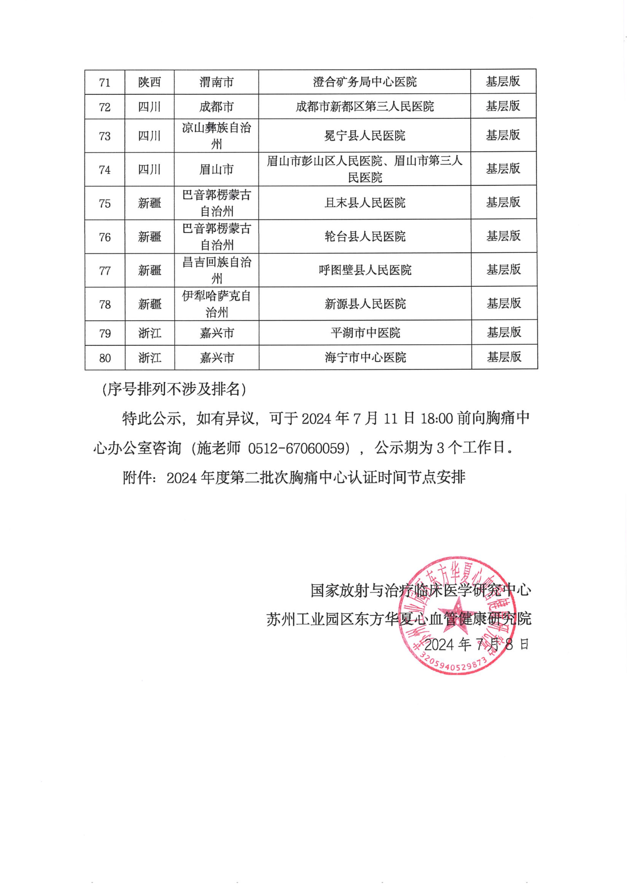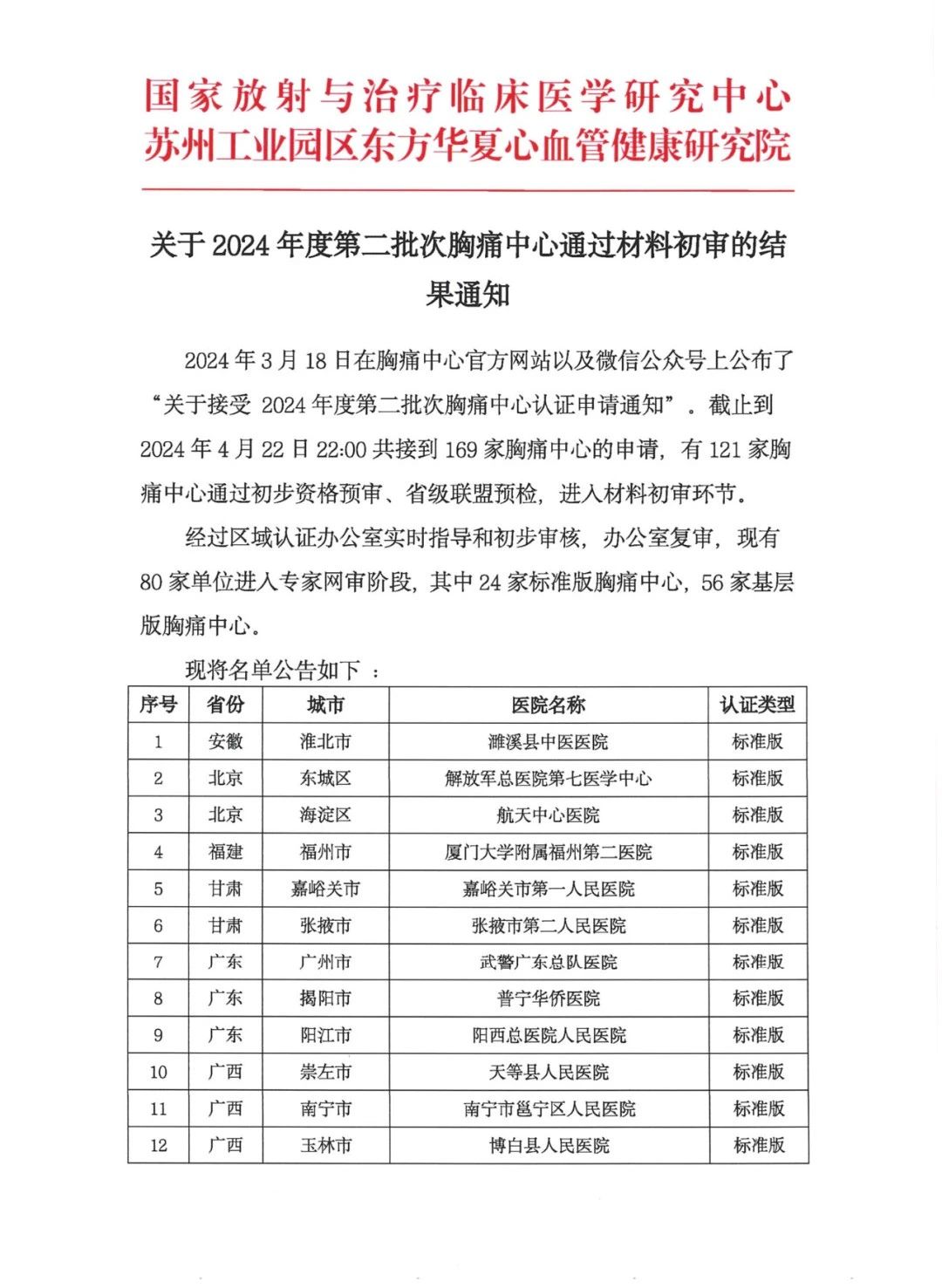重要通知|关于2024年度第二批次胸痛中心通过材料初审的结果通知