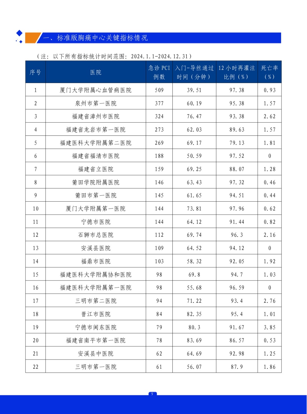 重要通知 | 2024年中国胸痛中心质控报告(福建)