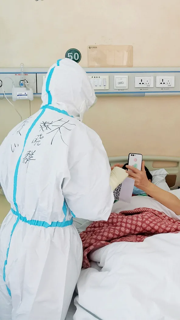 另一方面,在治疗患者新冠肺炎的同时,厦心护士也不忘抚慰他们受伤的心灵。作为厦心援鄂队伍中年龄最小的队员,心理小组成员朱晓群进入病区后,洞察到了住院患者们的焦虑与不安,每天都过得小心翼翼。她便将厦心特色的“双心护理模式”引进前线,主动尝试与患者沟通,并在医院后方后援团帮助下,专门为新冠肺炎患者定制了的“心理压力量表”,进行个性化的心理治疗方案。只要下了班有空,她都会与患者微信聊天,把疫情有关的正面消息反馈给患者,传递信心。
