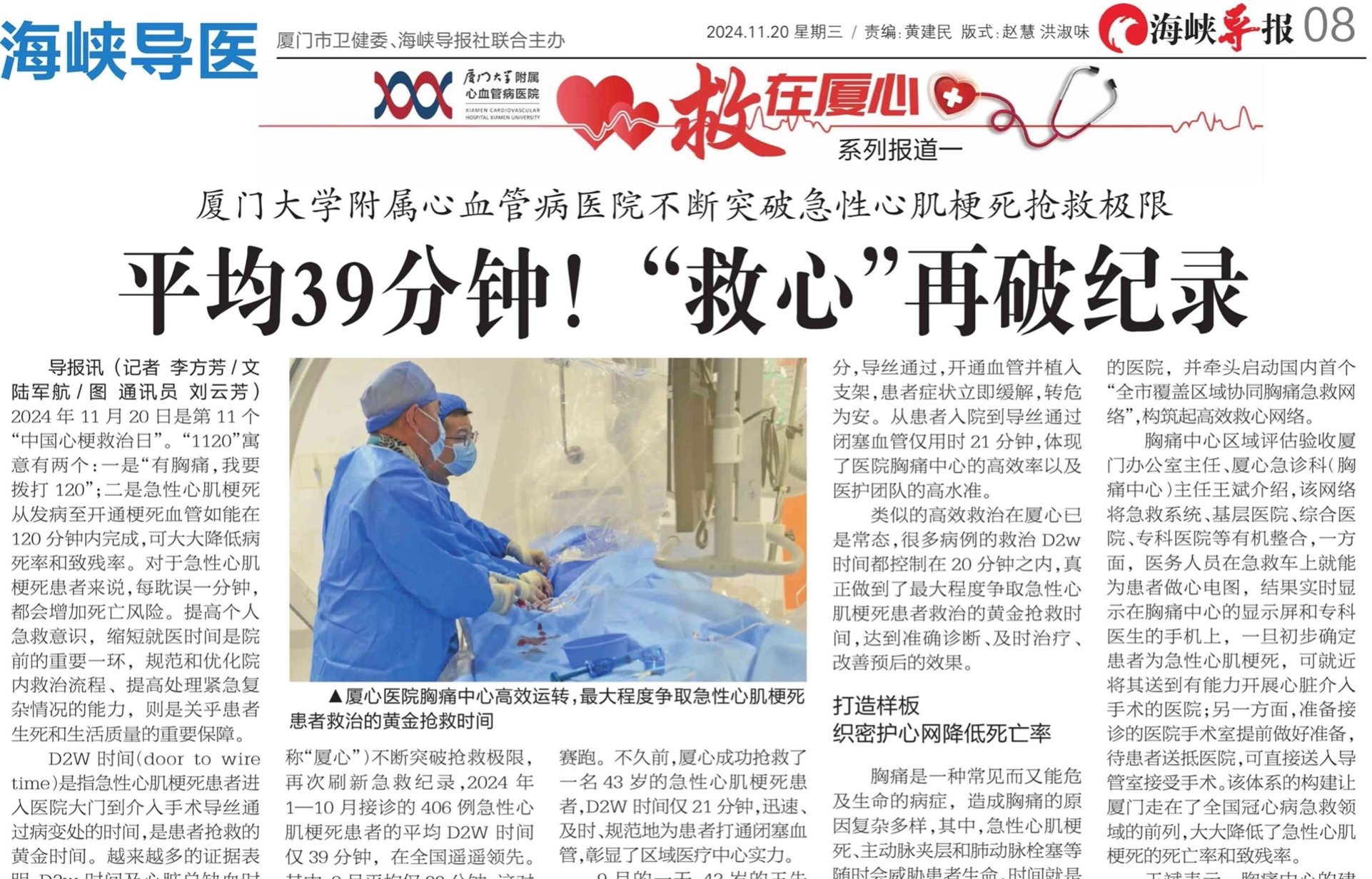 2024-11-20海峡导报|406例,平均39分钟,厦心再次刷新急救记录!