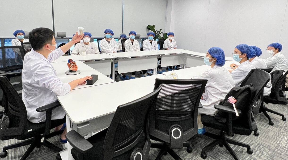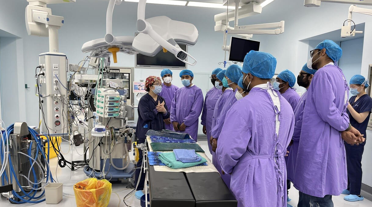 多位具有海外留学背景的年轻教师负责留学生课程的全英文授课,高年资主治医生或副主任医师进行见习、实习带教,教学方式灵活,让学生参与心脏移植、冠状动脉搭桥、大血管病治疗、先天性心脏病等各类心脏外科手术术前讨论,通过观看手术过程,激发学生学习热情与学科兴趣。