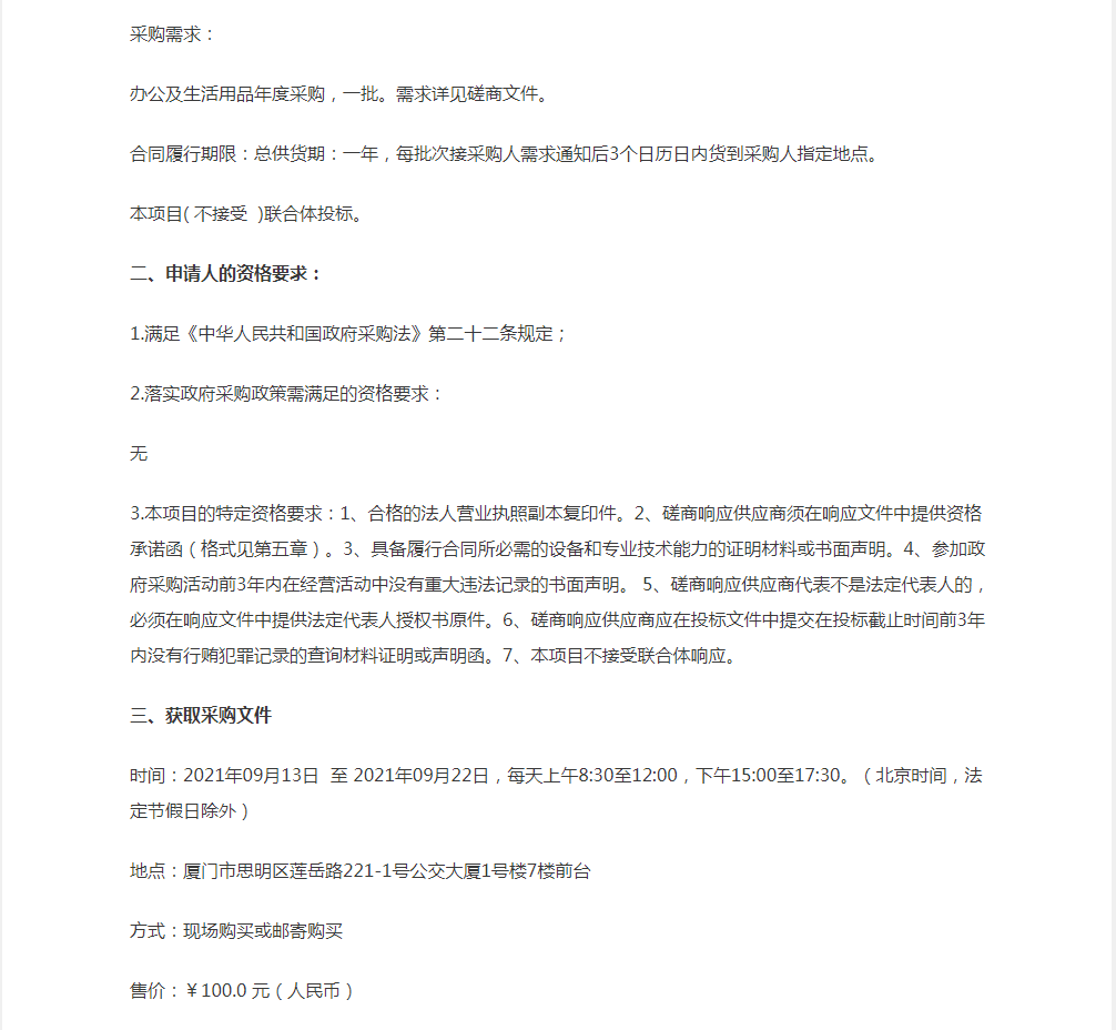 办公及生活用品年度采购项目采购公告