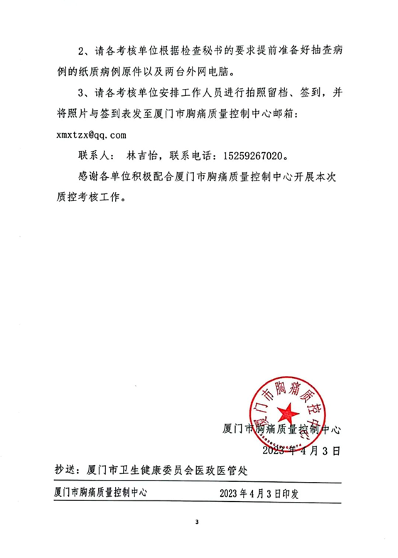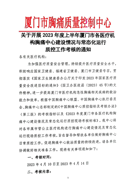 重要通知 | 关于开展2023年度上半年厦门市各医疗机构胸痛中心建设情况与常态化运行质控工作考核的通知