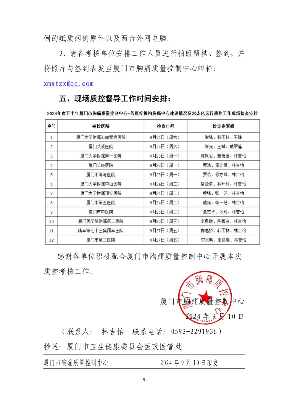 重要通知 | 关于开展2024年度下半年厦门市各医疗机构胸痛中心建设情况与常态化运行质控工作考核的通知