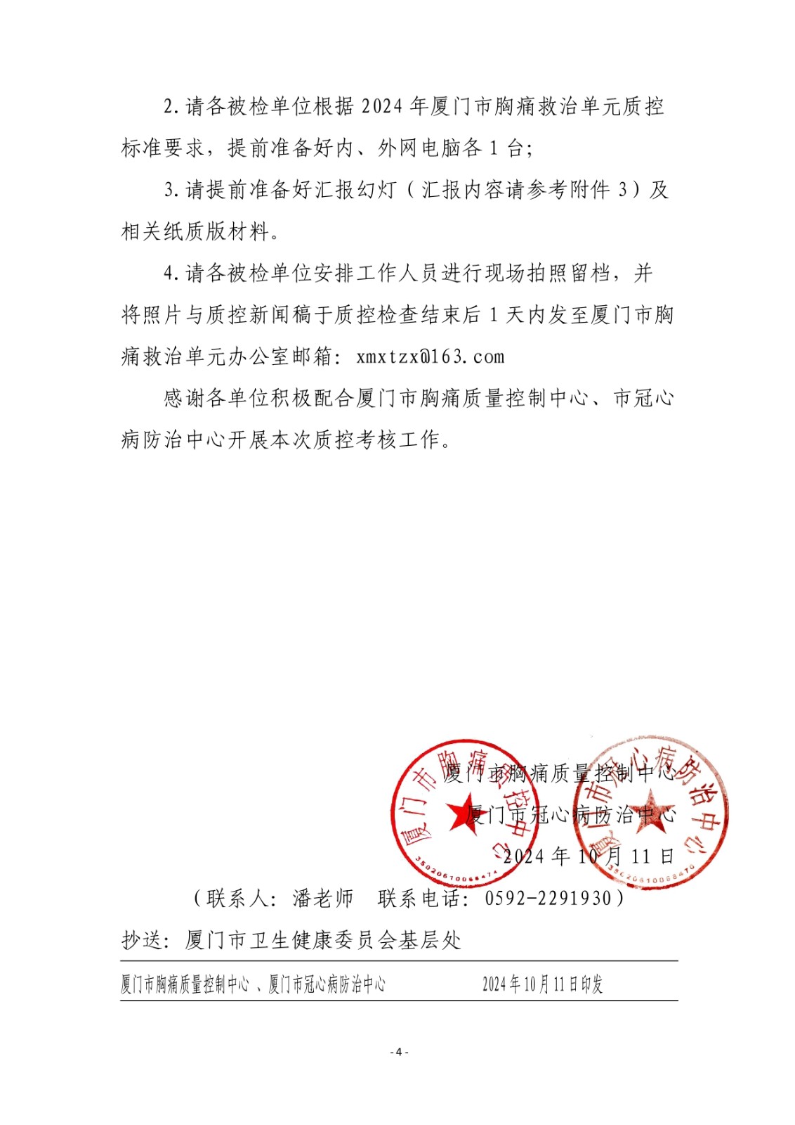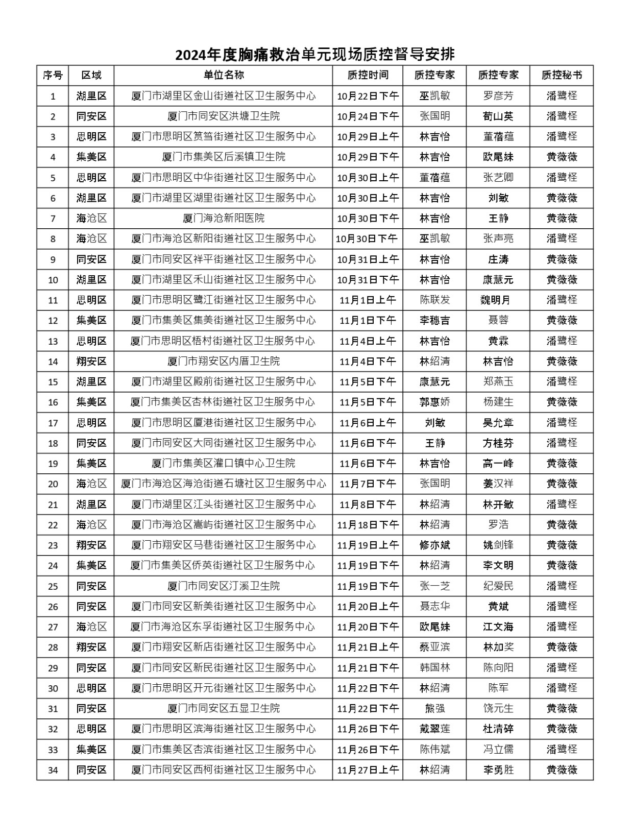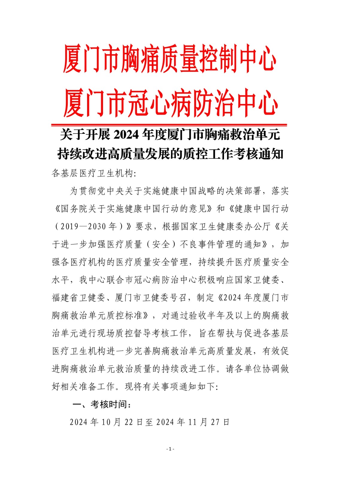 重要通知 | 关于开展2024年度厦门市胸痛救治单元持续改进高质量发展的质控工作考核通知