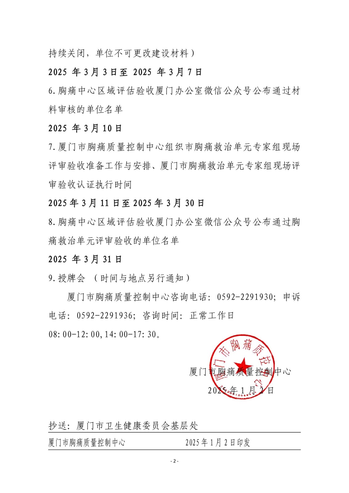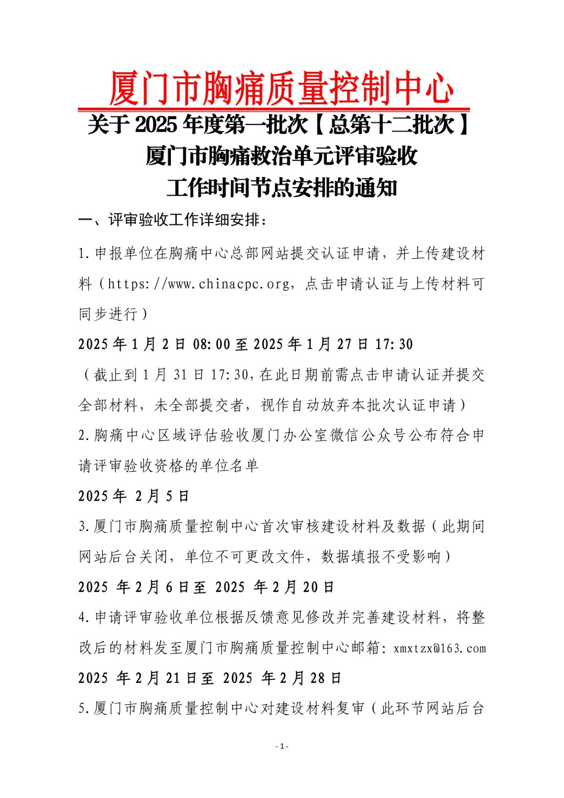 重要通知 | 关于 2025 年度第一批次【总第十二批次】厦门市胸痛救治单元评审验收工作时间节点安排的通知