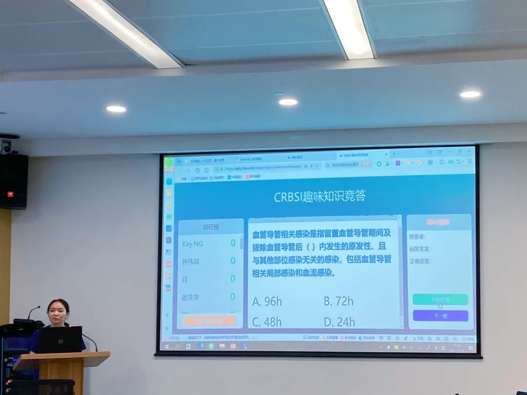 随后,举行了CLABSI趣味知识竞答,在场所有人员均参与其中,大家比反应、拼手速,你追我赶,毫不相让,充分展现了良好的知识储备和精神风貌,也将现场气氛再一次推向了高潮。通过趣味知识竞答,医护人员的安全防范意识有了新的提高。
