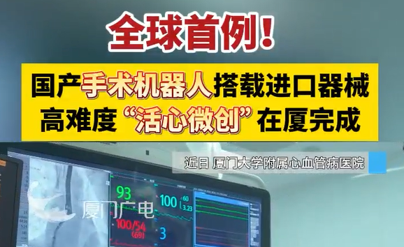 2024-05-30厦门广电|全球首例!国产手术机器人搭载进口器械,高难度“活心微创”在厦完成! -